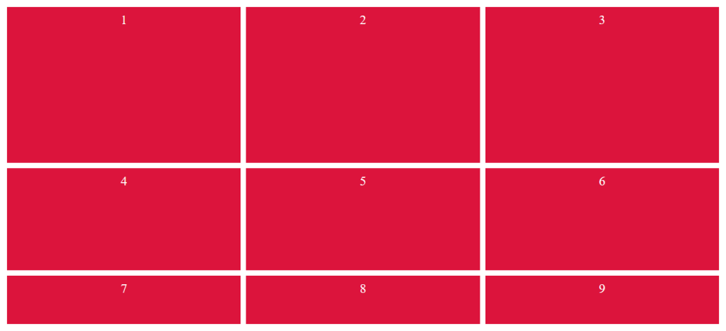 To make an HTML element behave as a grid container, you have to set the display property with a value of grid to generates a block-level grid or inline-grid to generates an inline-level grid. All direct children of the grid container automatically become grid items.