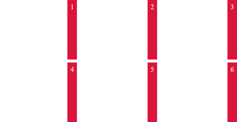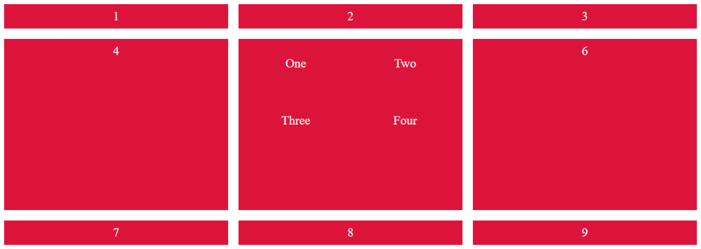This 4-column by 4-row grid results in 5 column lines and 5 row lines. Item 6 was repositioned by row and column line numbers.