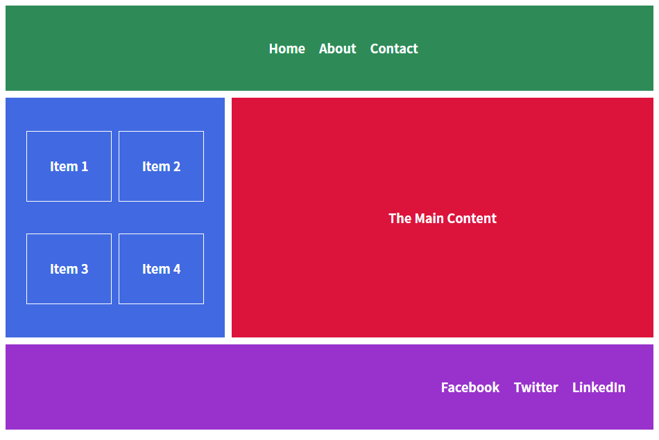 This is a simple layout created using Flexbox and CSS Grid. You will find the source files in Github.com in the Conclusion Section at the end of the post.