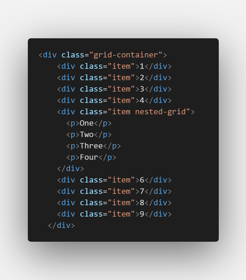 If we need to create a grid for the paragraph elements inside the div with the class of nested-grid in the below image
